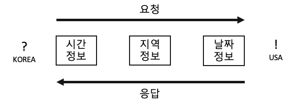 한국의 날씨 정보가 아니라 미국의 날씨 정보였다