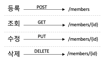 회원에 대한 CRUD를 구현한다면 members라는 리소스를 꼭 표현해야 한다는 것이다
