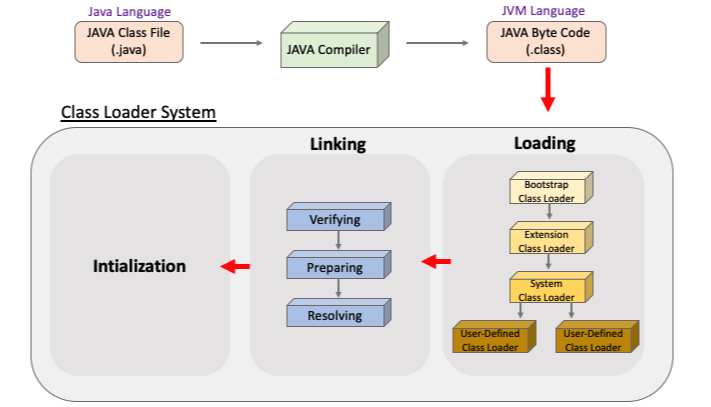 (좀 더 간단하게 풀어보자면 Class Loader는 Byte Code를 읽어 들여 class 객체를 생성하고 JVM의 메모리 영역인 Runtime Data Area로 이동시킨다)