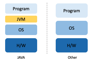 자바 같은 경우 다른 일반적인 프로그램과 다르게 OS와 Program 사이에서 JVM(Java Virtual Machine)이 실행된다