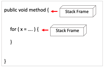이는 메서드뿐만 아니라 if문 , 반복문 등도 모두 스택 프레임이 생기게 된다