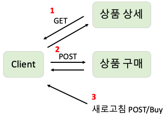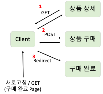 이렇게 되면 클라이언트는 아무리 새로고침을 하더라도 구매 완료라는 페이지(GET)만 보이기 때문에